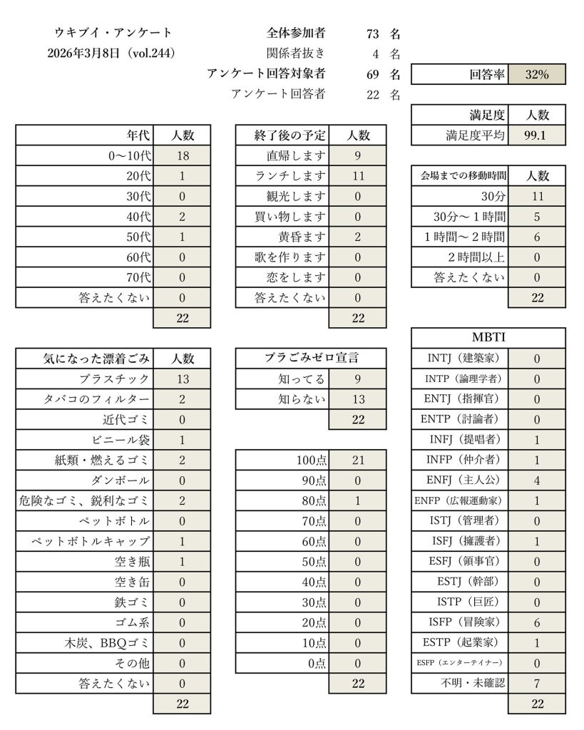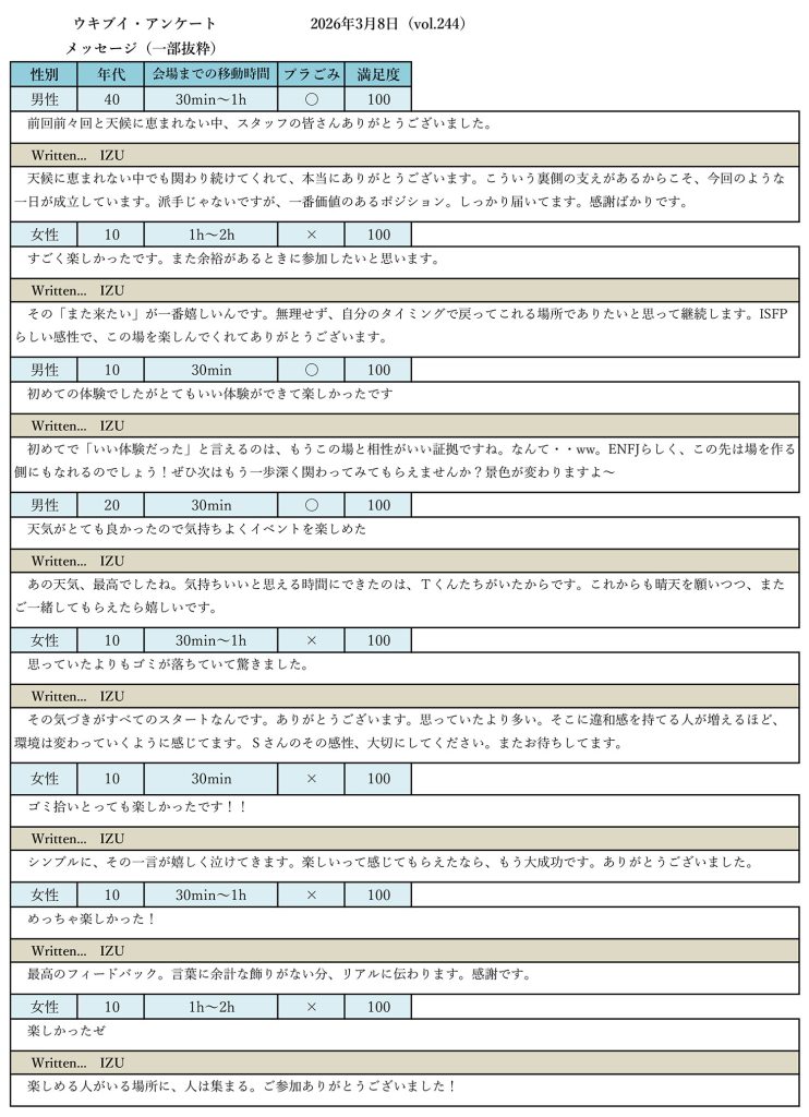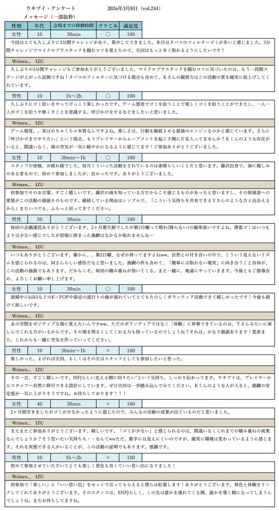 さらに、「ゴミが少なく感じた」という意見もあり、これまでの継続的な取り組みが、確実に成果として表れ始めていることが伺えました。